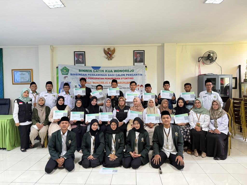 Wonorejo, [25 Agustus 2025] – Kantor Urusan Agama (KUA) Kecamatan Wonorejo menyelenggarakan kegiatan Bimbingan Perkawinan (BIMWIN) bagi calon pengantin sebagai upaya meningkatkan kualitas keluarga sekaligus mendukung percepatan penurunan stunting di masyarakat.